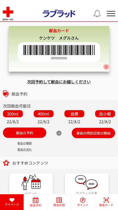 - 近くの献血施設を探して予約できる。予約日にはプッシュ通知でお知らせ