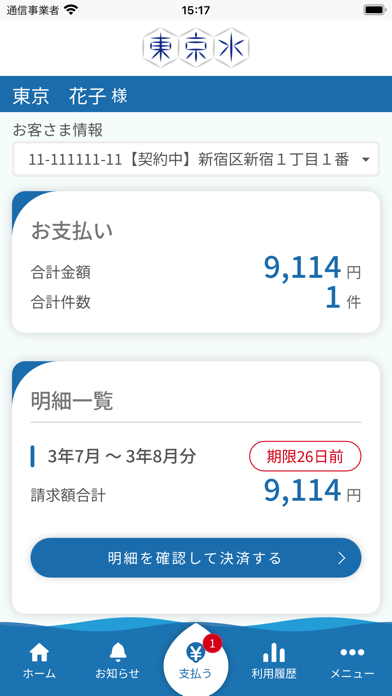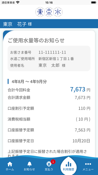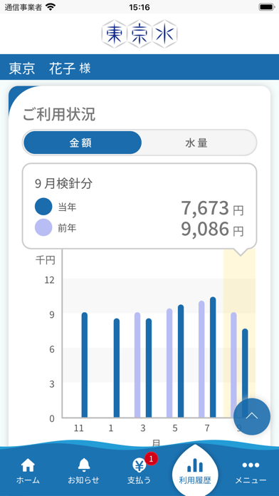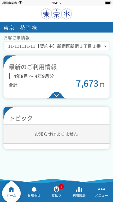 - 東京都水道局の公式アプリ。過去2年分の水道料金を照会できる