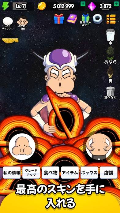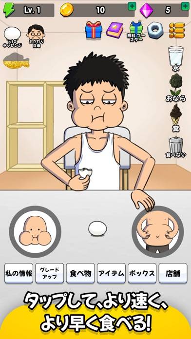 - タップ操作で咀嚼と消化を繰り返す、フードファイター育成ゲーム