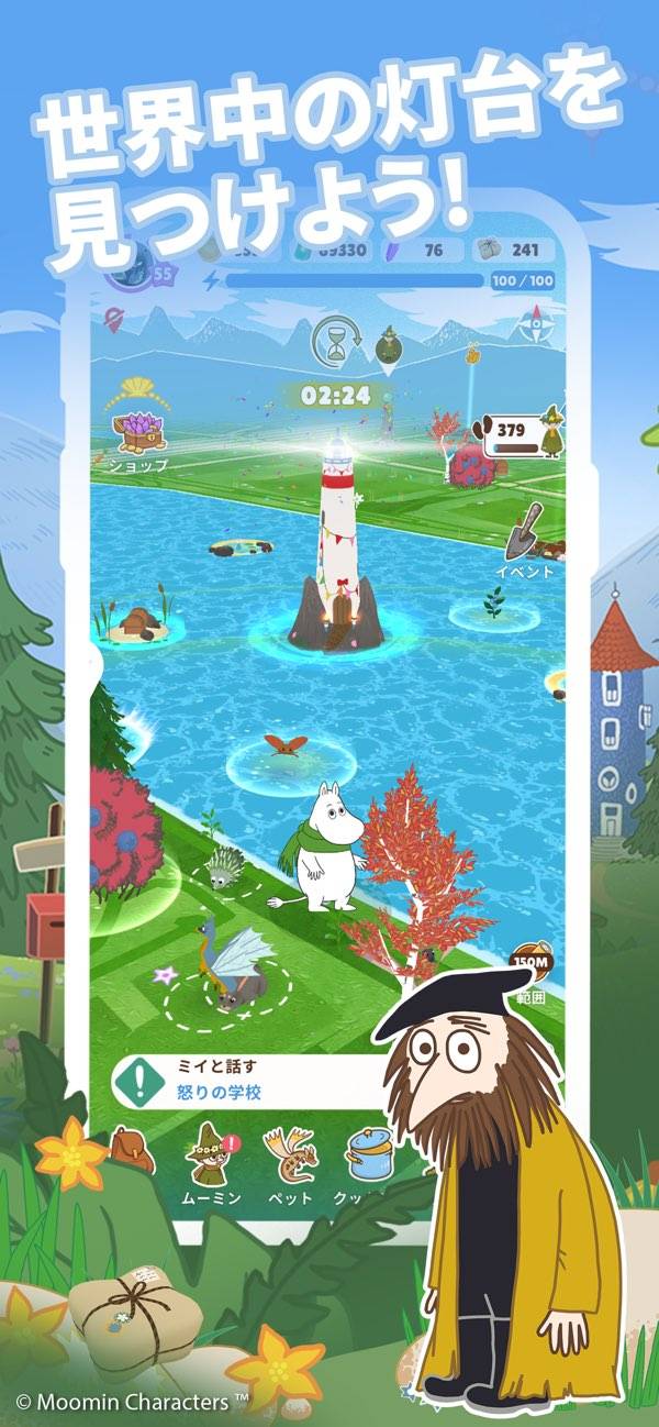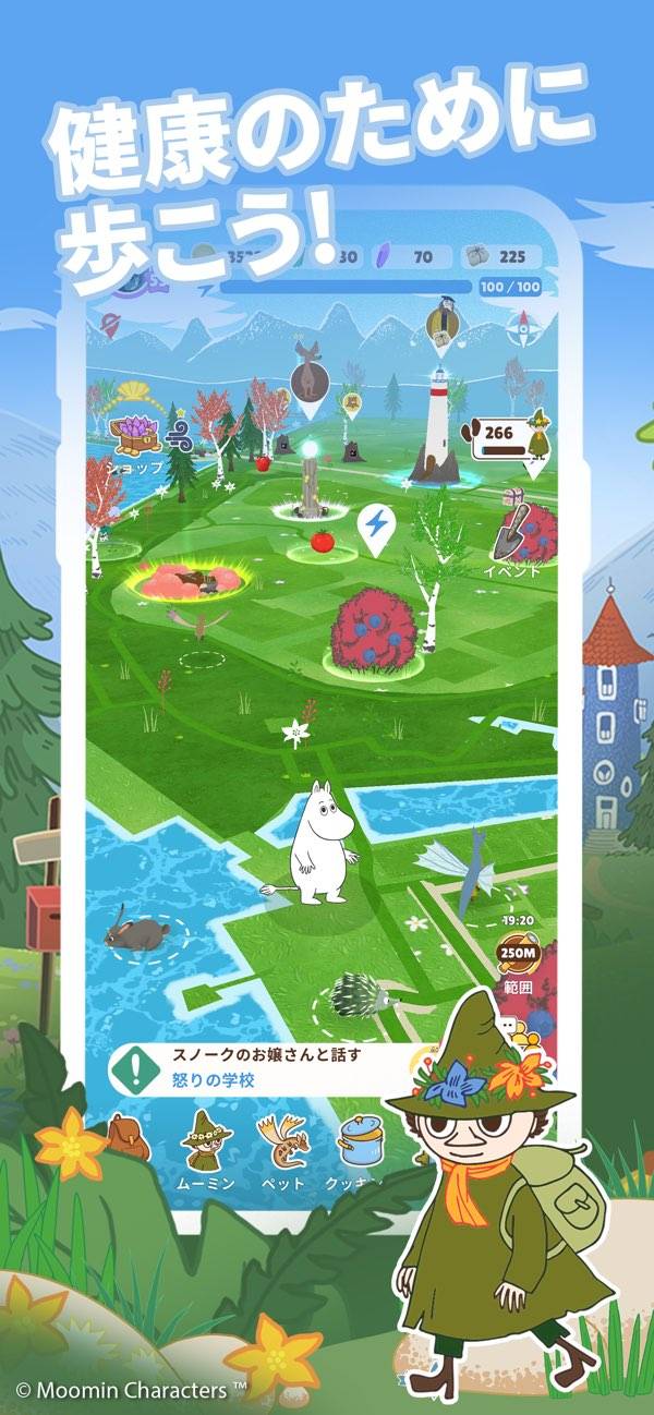 ムーミンと一緒に歩いて冒険するGPSシミュレーションです。GPS機能を使ってリアルな世界を冒険しながら、ムーミン谷の世界観を楽しめます。住人からの依頼を受けて街を探索し、アイテムや宝箱を集めましょう。