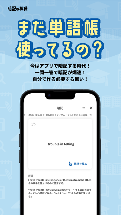 「暗記の神様」は、勉強が苦手な人でも手軽に勉強ができるように工夫して開発しました。