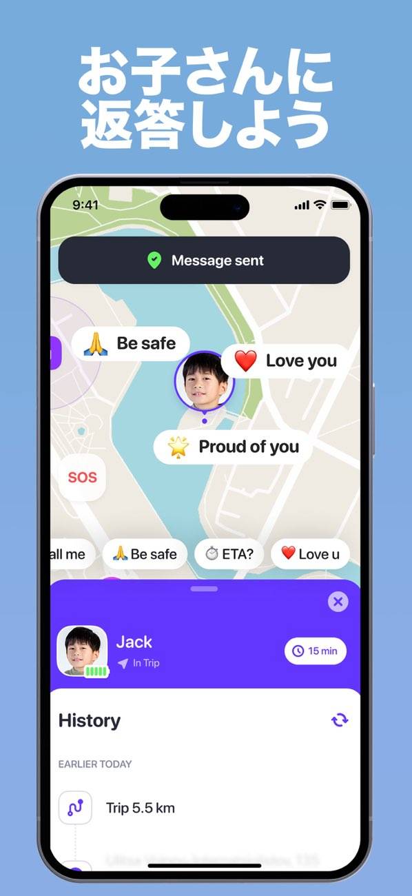 地図に家族の現在地を表示し、互いに連絡を取り合える位置情報アプリです。緊急時のアラートもあり、安否をすぐに確認できるため、子供とはぐれたり両親に何かあったりしたときでも安心。連絡はチャットで行えるので、お互いに無理のないタイミングで連絡し合えるのも長所です。