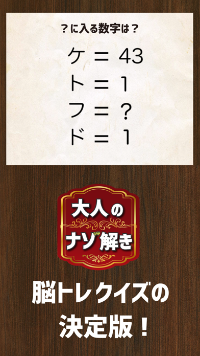 クイズ番組に出てくるような、ひらめきと推理力が試される脳トレアプリ。数分で解ける問題から、難しくて頭をひねるような問題まで、多彩な内容が収録されています。忙しい日常の中でも、待ち時間や移動時間で手軽に脳トレを楽しめるでしょう。