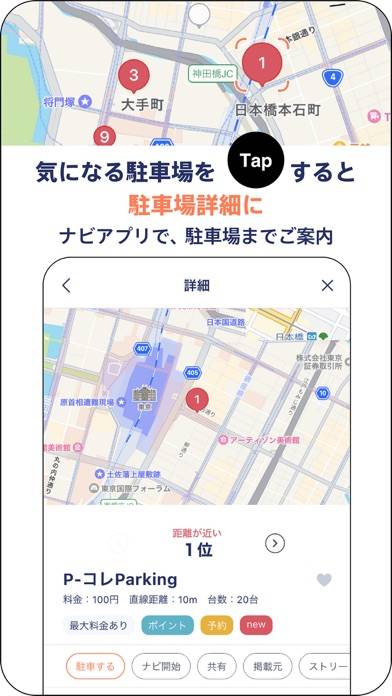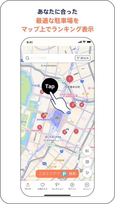 - 指定したエリアから、使いやすい駐車場をマップ上に表示してくれる