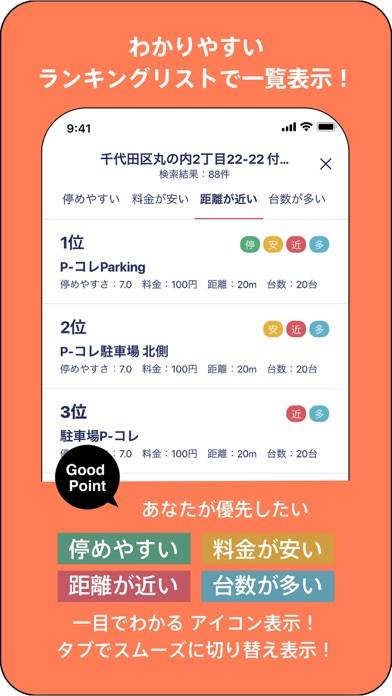 指定したエリア内で、駐車場を検索できるアプリです。安くて近く、駐車台数の多い駐車場をランキング形式で紹介。またポイント発行対象の駐車場を利用すると、Amazonギフト券Eメールタイプと交換できるポイントがもらえます。