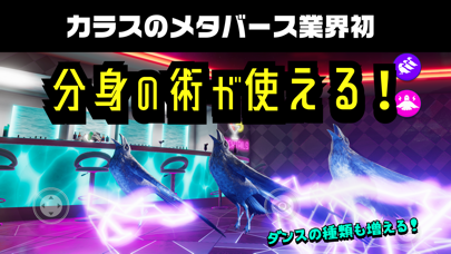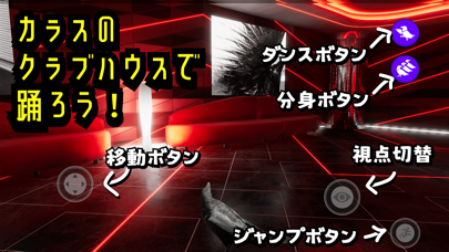ダンス特化型のカオスなメタバース空間が特徴です。ノリの良い音楽が流れるクラブハウスでカラスとなり、歩き回ったりジャンプしたりと楽しみ方は自由。