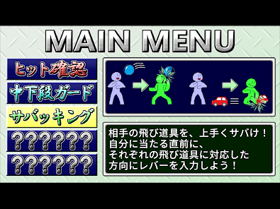 • ヒット、ガードの瞬間にボタンをタップ。格ゲーの動き方を練習できる