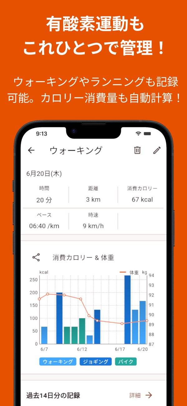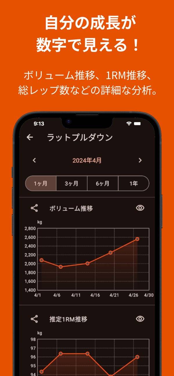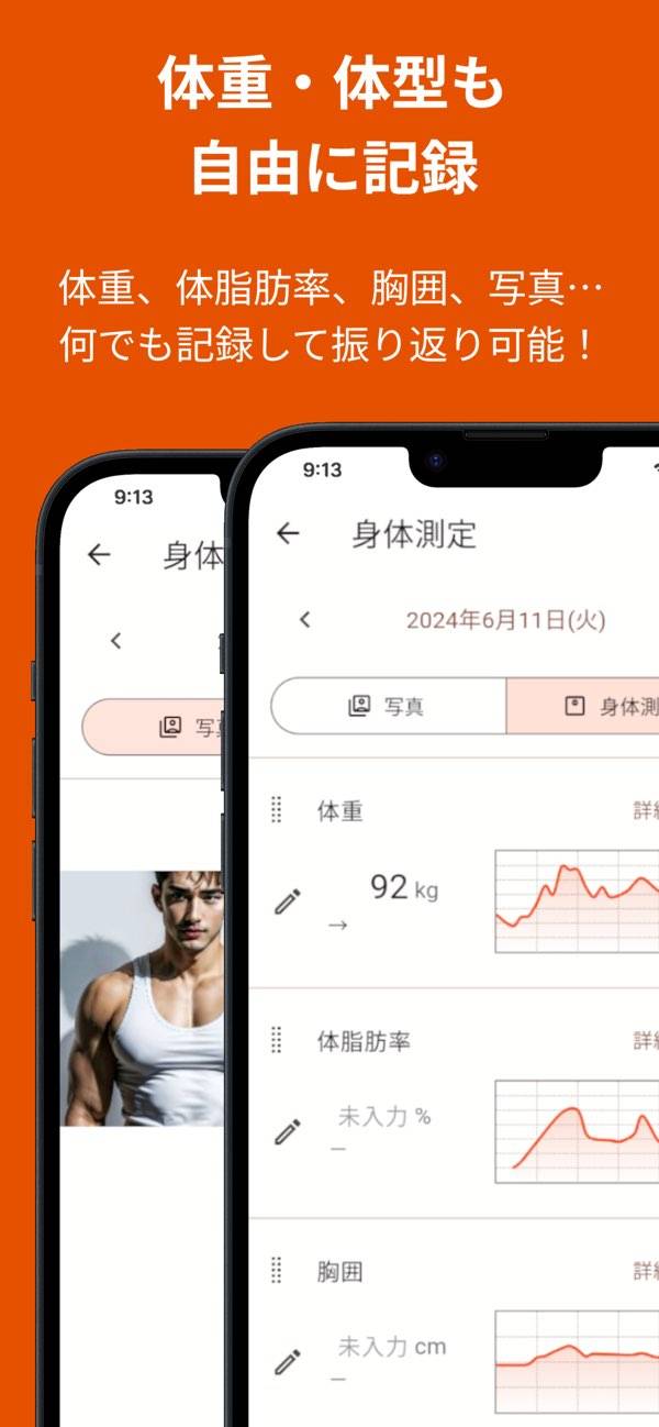 - トレーニング内容や体重の推移をグラフ化。振り返りやすさが魅力
