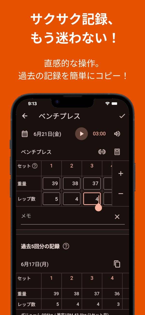 開発者自身の筋トレ経験を元に、筋トレ記録アプリにはどういう機能が必要で、どういう機能を余計なお世話と感じたり、イライラするのかを考え抜き、記録と分析に必要な機能を厳選。