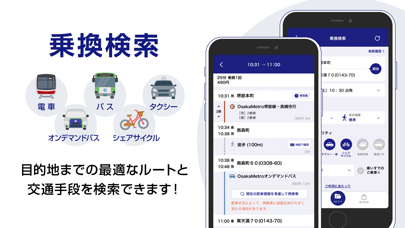 大阪に特化した乗換案内アプリです。電車やタクシーなどのさまざまな交通機関を駆使した乗り換え案内をしてもらえます。また指定地域で使える、規定ルートや時間のないオンデマンドバスの予約や利用が可能です。大阪に住んでいる人はもちろん、観光客の方にも便利ですよ。