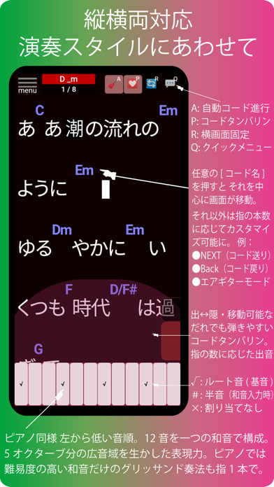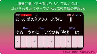 - ピアノソロの弾き語りもできる。コード進行はアプリがフォロー