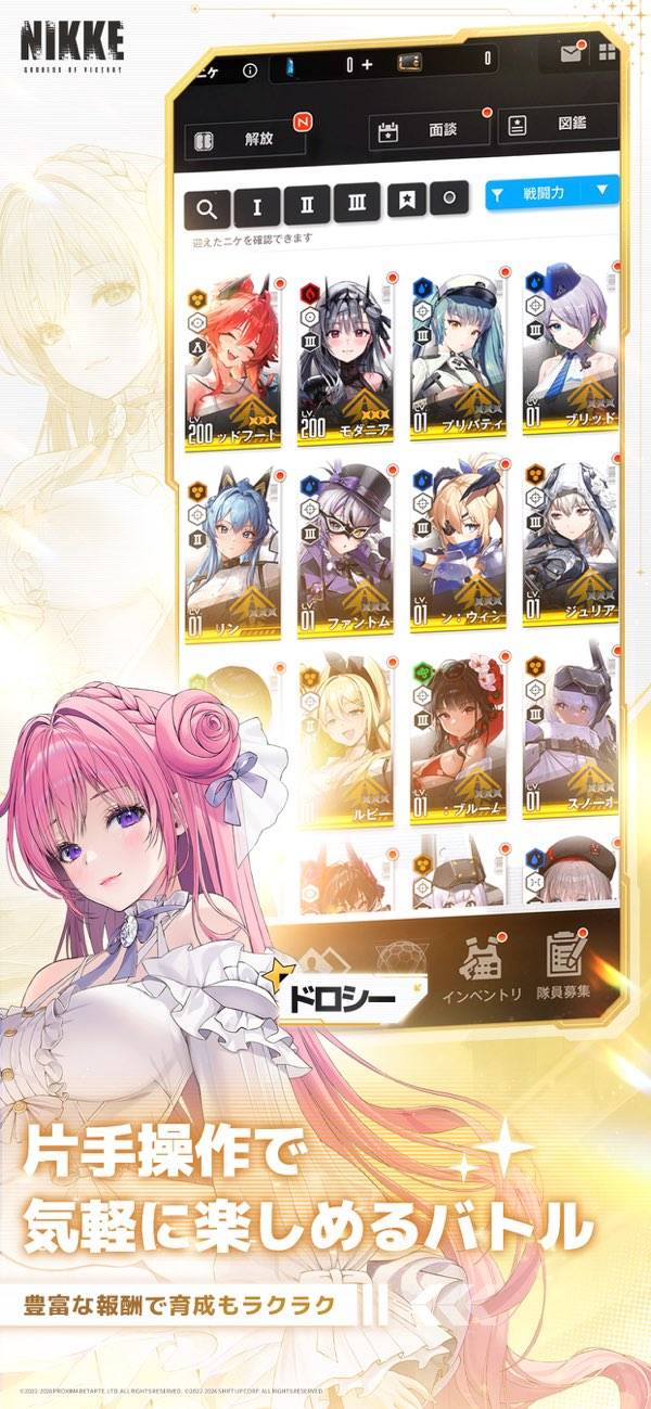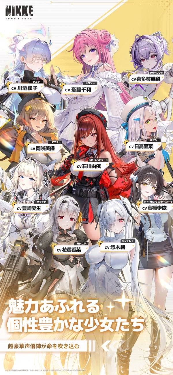 退廃的な世界を舞台に、少女たちが銃器を手に戦うコントラストが目を引くガンアクションRPG。謎の機械系生命体「ラプチャー」に侵略された地上を舞台に、少女型兵器「ニケ」と共に過酷な世界を戦い抜いていきます。