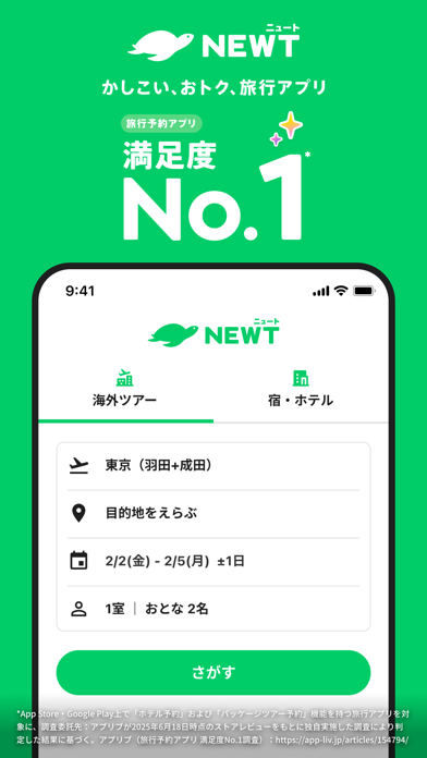 旅の予定をぜんぶまとめて管理できる旅行アプリ。目的地や予算を入力するだけでツアーや宿泊先をかんたんに検索できます。飛行機やホテルの予約からスケジュールの確認まで、スマホひとつで旅がまるごと完結。これさえあれば、旅の不安がグッと減ります。