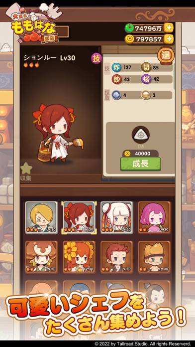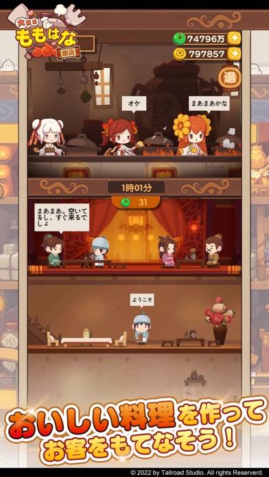 シェフはあらかじめ決めた料理をひたすら作り続けてくれます。食材の在庫を見ながら作れる料理をどんどん頼んでみましょう。提供する料理によって営業時間や売上が変化します。売上をすぐに回収したい場合には「ジェム」を使うと便利ですよ。