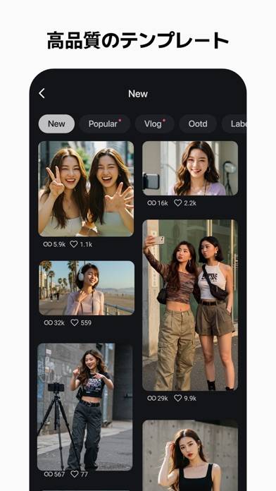 アプリ内のクリエイターが制作した映像をテンプレートとして活用できる動画編集アプリです。世界中にクリエイターが在籍しているため、さまざまな国の流行りを手軽に取り入れられる点が魅力。