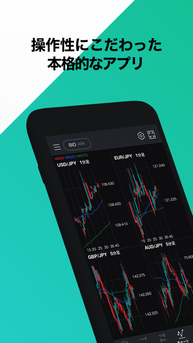 - 直感的に使えるチャート画面。移動中や外出時の相場分析にも便利