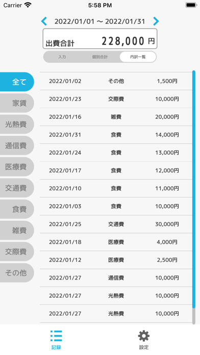 - アプリを開けば家賃や光熱費などカテゴリごとにすぐ記録できる