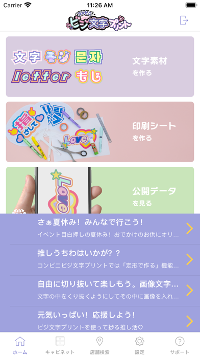 - スマホひとつで文字入りシートが完成。コンビニで印刷できてお手軽