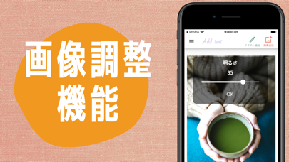 また画像加工機能もあり、テキスト入力と一緒に明るさや彩度調整なども可能。ストレスフリーでサクッと画像作成ができますよ。