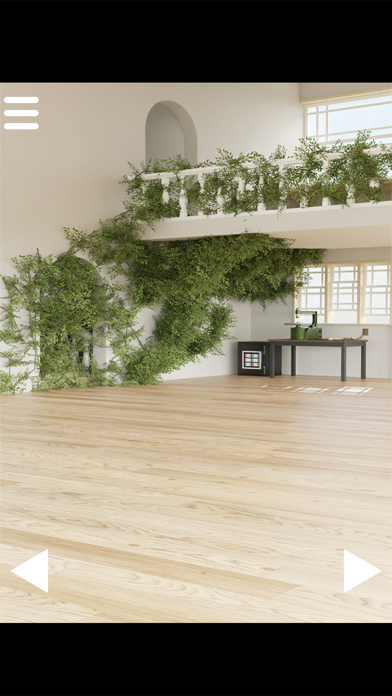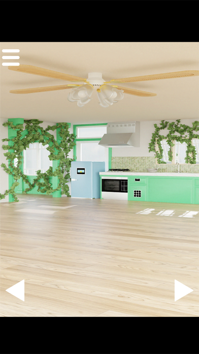 キッチンや床などは綺麗なのに、ツタが壁に這っている不思議な家が舞台。画面をタップして視点を変えたり、手がかりを探したりしながら脱出を目指します。端から端までくまなく探索してみましょう。