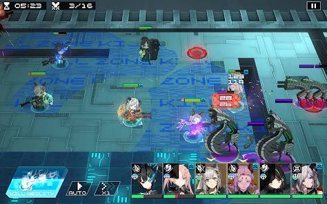 バトルはリアルタイムに半自動で進行します。ユニットを移動させ、前衛と後衛の攻撃範囲を重ねることで青い“キルゾーン”を形成。この“キルゾーン”内では、さまざまな強化効果を受けられます。状況を見ながら陣形を組み替える、アクション性を楽しめるでしょう。