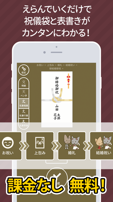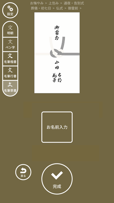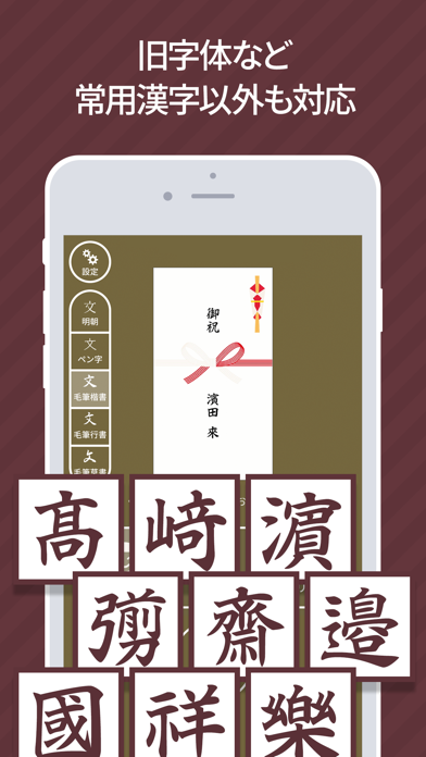 本アプリの開発者自身が筆で文字を書くのに不慣れで、結婚式の祝儀袋や、葬儀や法事の香典袋の名前を綺麗に書くのが苦手でした。