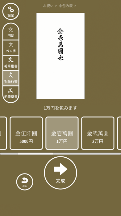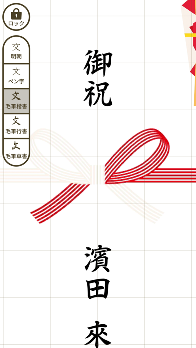 無料で使える他のアプリでは好みの毛筆フォントが無かったので、「なぞってご祝儀」では、クオリティの高い毛筆フォントを選べるよう、提供しています。