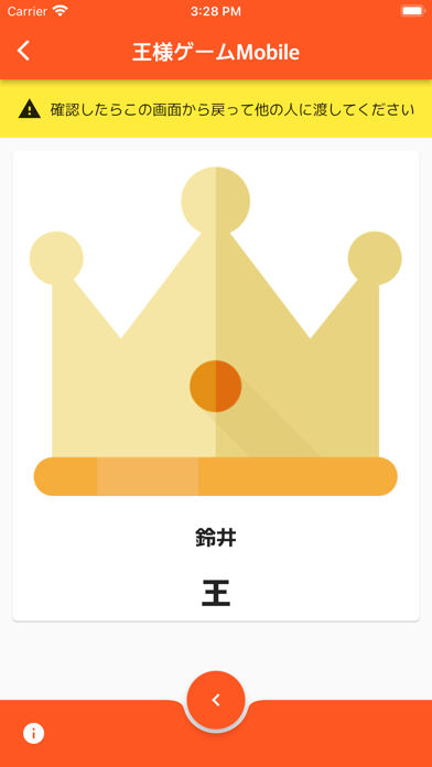 王様の指令には必ず従わなければならないというルールがあります。もし使い方に不明な箇所があれば、画面左下のインフォメーションボタンから確認できます。みんなで盛り上がりたいときにアプリを使ってみてはいかがでしょうか。