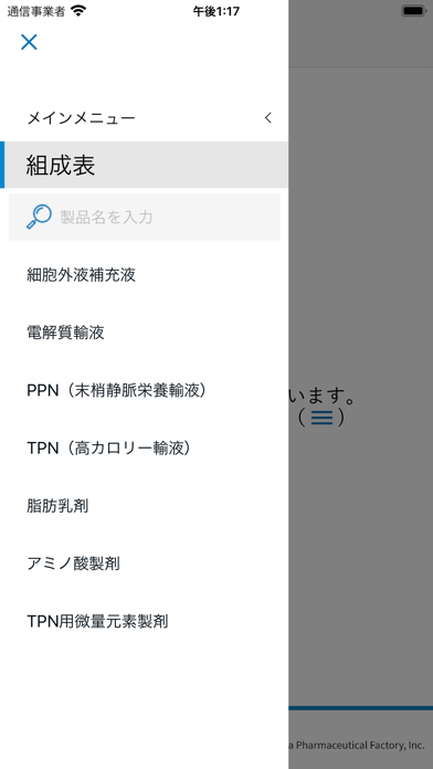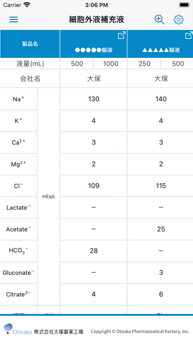 - 株式会社大塚製薬工場による輸液製剤の組成を確認できるアプリ