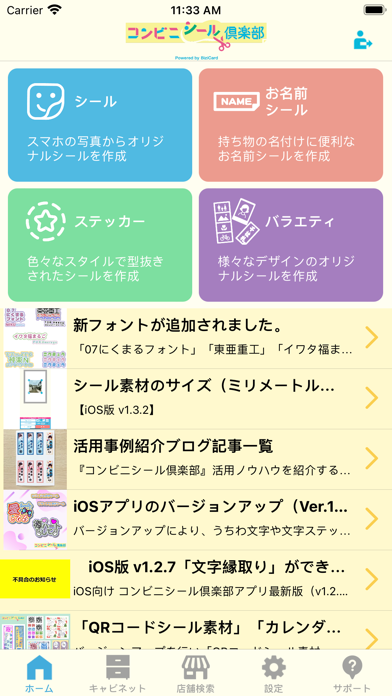 4カットフォトや千社札デザインなども作成可能。自分用はもちろん、友達との交換用にも向いており、シール遊びがいっそう楽しくなります。