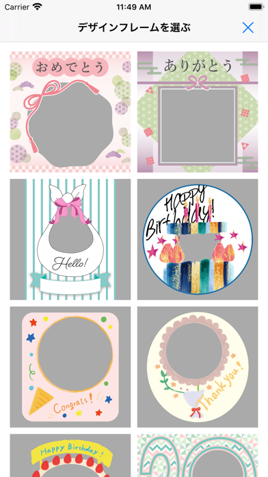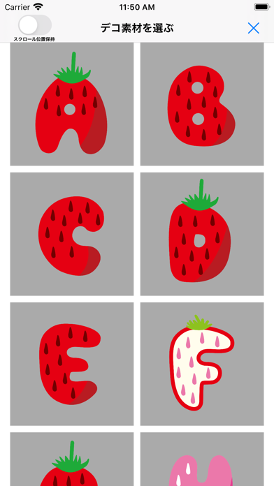 素材にはデコ用のスタンプやフレーム、文字入れ機能もあり、フォントも選べるのでデザインの幅が広がります。