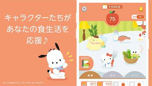 サンリオキャラクターたちがあなたの食生活を応援。それぞれが栄養素を担当し、食事内容に応じたアドバイスをくれるので、毎日の食事管理が楽しくなります。カロリーを気にするキティちゃんや、糖質の摂取をサポートするマイメロディから、多彩なアドバイスをもらえます。