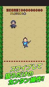 敵がラインに到達する前に、手裏剣を投げて倒していくシューティング。画面をスワイプして、狙った方向に手裏剣を投げられます。手裏剣は素早く連射もでき、遊びやすさは充分。ステージはエンドレスなので、ひたすら敵を倒し続けてスコアを稼ぎましょう。