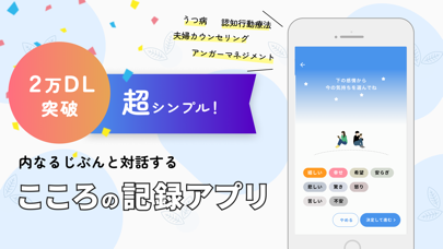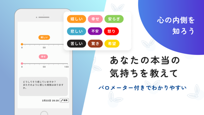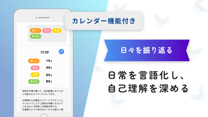 落ち込んだときやモヤモヤするときに、数タップで感情を記録できます。60種類以上の気分から当てはまるものを選び、感情の大きさをパーセントで表すだけ。