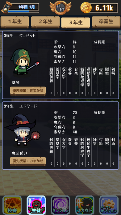 冒険者学園なので、1年ごとに生徒たちが卒業します。卒業した生徒の代わりに新1年生が入学してきますが、その際スカウトがとても重要になります。さまざまな可能性を秘めた冒険者の卵がいるので、能力を見ながらスカウトしていきましょう。