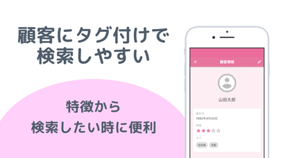 顧客の名前はもちろん、誕生日や特徴など細かく登録できます。家族構成や職業などのよく使う情報は、タグを作成しておくと便利。また前回話した内容などは、顧客情報のメモを利用すれば文章で残しておけますよ。