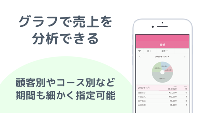 - 円グラフで顧客ごとの売上を表示。期間を設定した上で分析できる