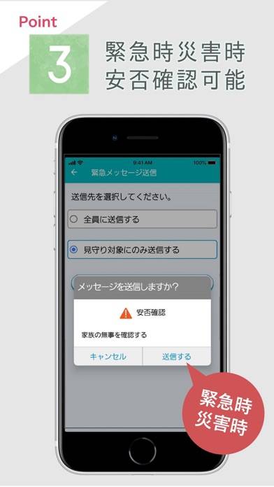 - 返事がないと位置情報が見られるので、もしものときも落ち着いて対応できる