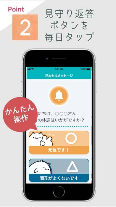 - 毎日の定時通知とタップ返答で、自然な形での安否確認ができる