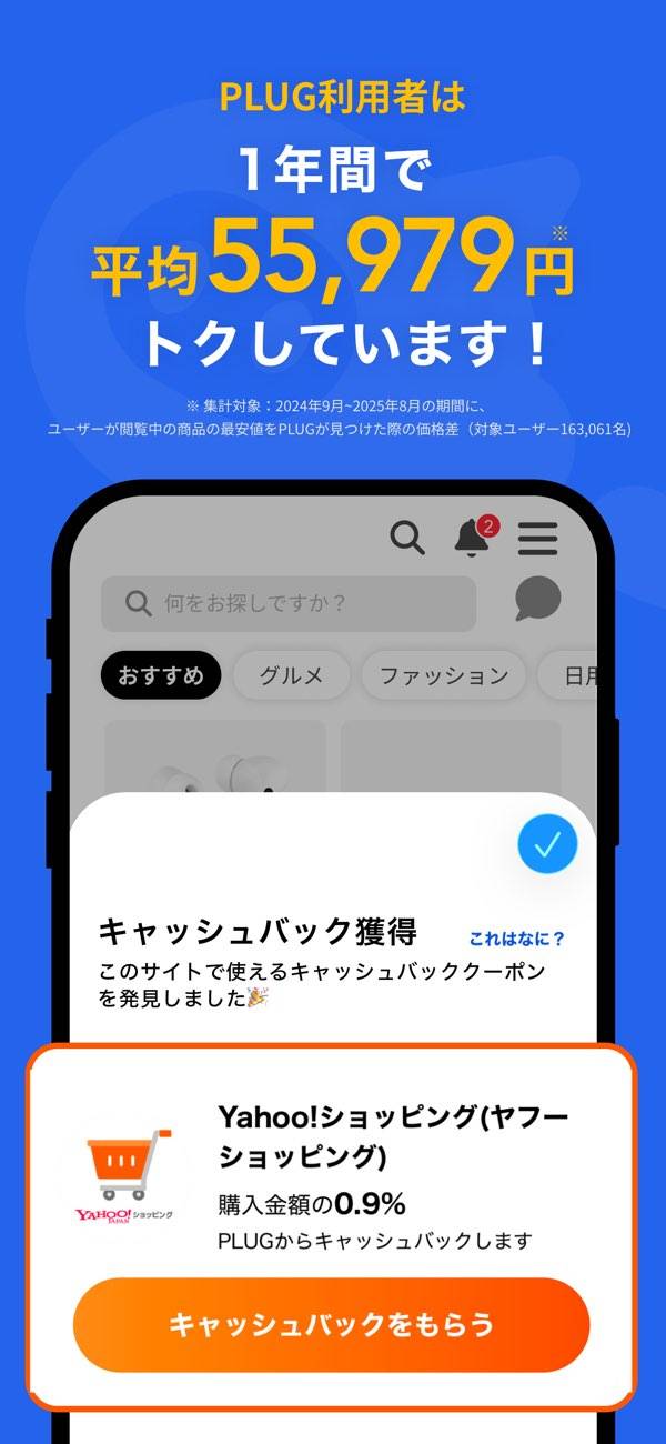 ※集計対象:2024年9月~2025年8月の期間に、ユーザーが閲覧中の商品の最安値をPLUGが見つけた際の価格差(対象ユーザー163,061名)