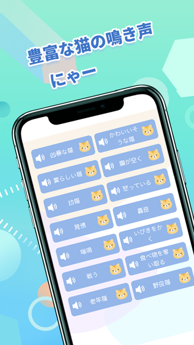 本アプリには多数の犬と猫の鳴き声が収録されています。声を変換する手間を省き、ワンタップするだけで犬か猫の鳴き声を再生可能。伝わっているわけではないと思いますが、言葉の意味ごとに鳴き声がことなります。