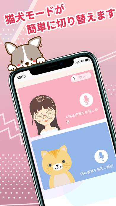 - 「わんわん」「にゃんにゃん」を人の言葉に変換。犬猫好きにぴったり