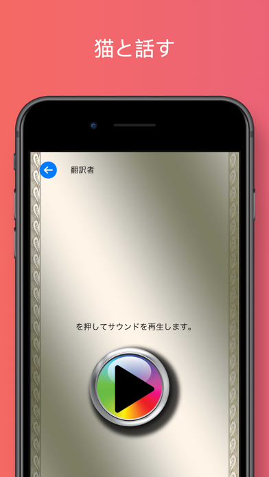「こんにちは」「お元気ですか」「いい子だね」など、猫語風のフレーズを収録したボイスが再生できます。ワンタップで音を鳴らすだけなので、猫が聞いてどう反応するかを見るだけでちょっと楽しい気分に。お気に入りの音を見つけて、猫とのほんわかタイムを過ごしましょう。