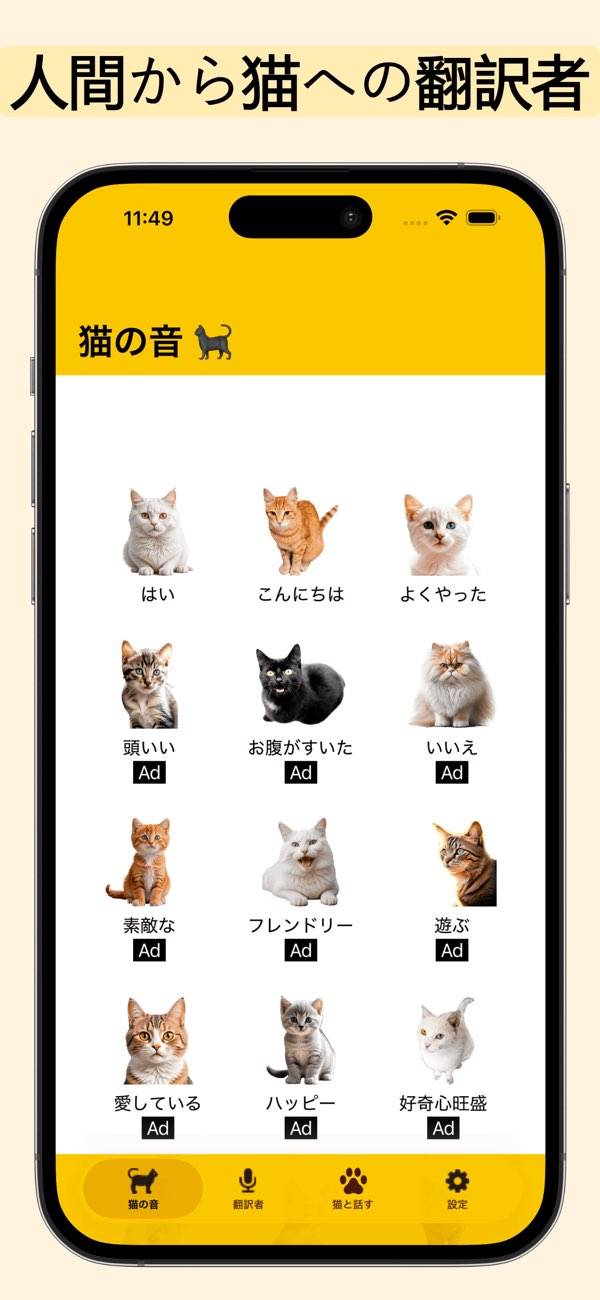 猫との時間をほんの少し特別にしてくれるおしゃべりアプリ。ボタンをタップするだけで「こんにちは」「いい子だね」などの猫語風フレーズを再生できます。どんな反応をしてくれるかは猫次第。気ままなやりとりを楽しめる、猫好きさんの遊び心をくすぐるアプリです。