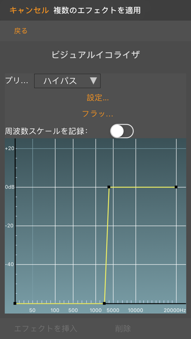 イコライザや歪みといった多彩なエフェクトを使用できます。イコライザはプリセットだけでなく、細かに周波数帯の調整が可能。複数のエフェクトを同時に適用できるため、より柔軟な音作りができるようになります。