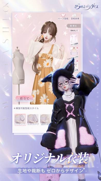 ストーリーが進むと、インテリアをカスタムしたり服を作成したりできます。ファッションデザイナーに関しては、オリジナル衣装を一から作り上げていくシステムを搭載。生地とカラー模様のデザイン設定などやりごたえも十分ですよ。