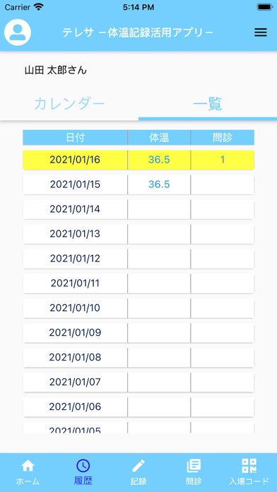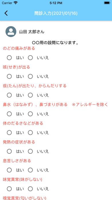 - 体調に関する問診を行い、健康状態をデータで残せる