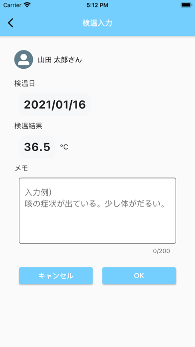 - イベントに参加できる体調か、日々の検温記録ができるアプリ