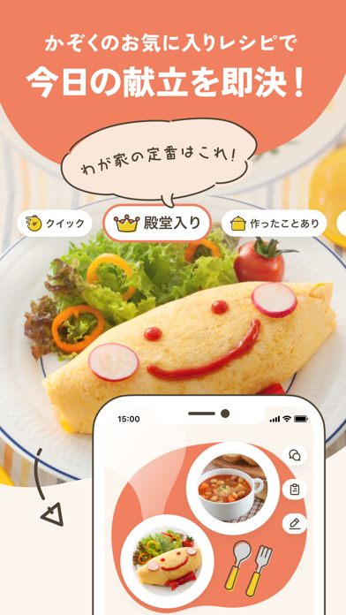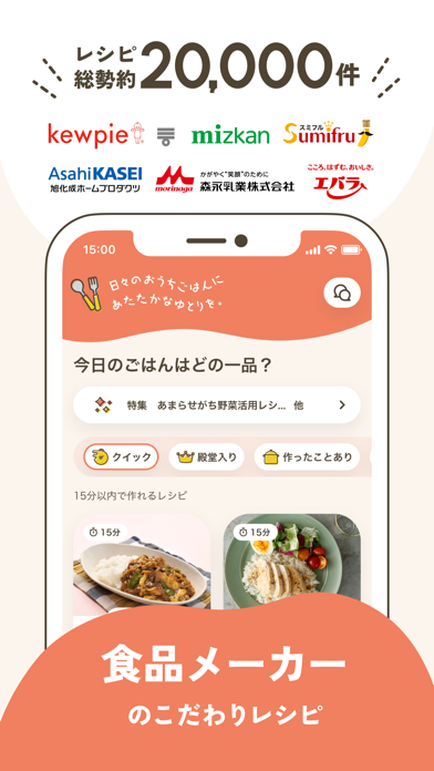 食品メーカーが提案した、2万以上のレシピを見られるアプリです。手早く作れるレシピが多く公開されており、忙しい日でもササッと献立を組めます。作ったレシピは「うちれぴ帳」に登録され、家族と感想を共有し合うことが可能。レパートリーに困った時は、本アプリを試してみてはいかがでしょう。