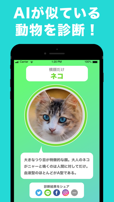 「動物顔診断」AIが似ているどうぶつ 顔診断 アプリ カメラ